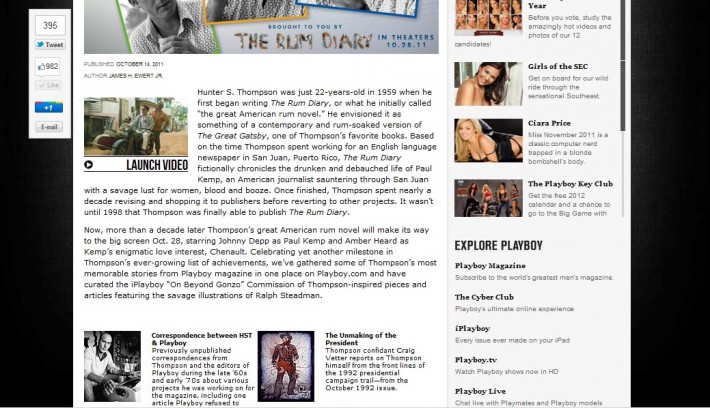 Web Producer and Magazine Section Editor for Playboy.com – January 2011-January 2012